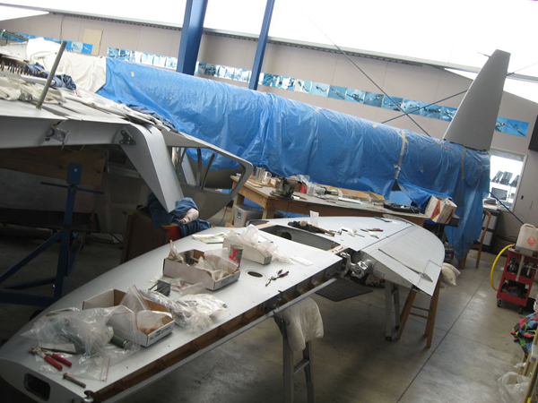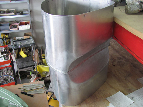 Work has continued on the tanks and this month progress can be seen on the long range oil tank. Tooling has been fabricated to produce the formed ends and the main body and these sections are now ready for assembly.