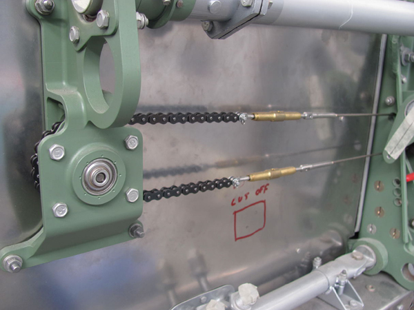 We have been supplied with most of the custom made control cables and have installed the fuel shut off cables onto the front face of the spar.