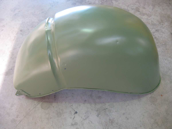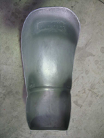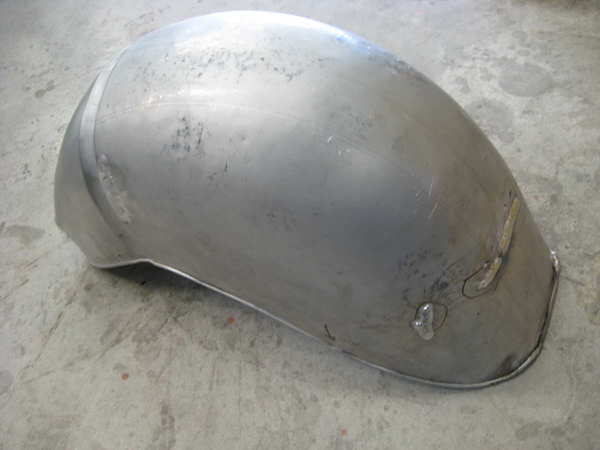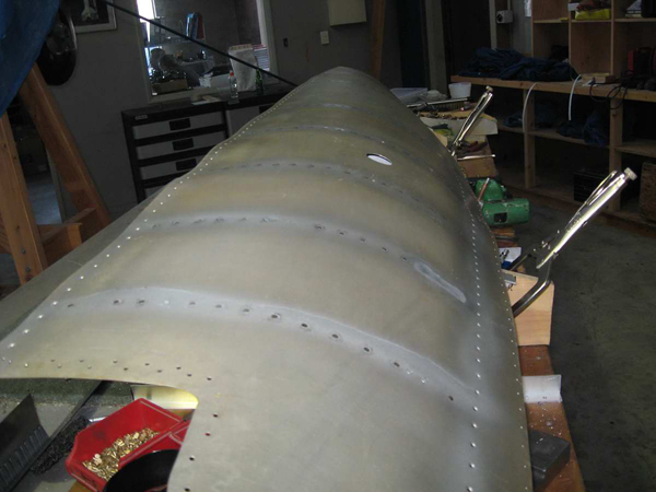 We have continued with the work around the tail with the repairs to the tailwheel mudguard. The cracks have been welded up and dressed and the dents planished out. The elevator pullet guard has received the same treatment and has been fitted along with the mudguard to the mounting frame.