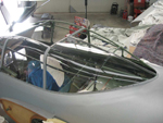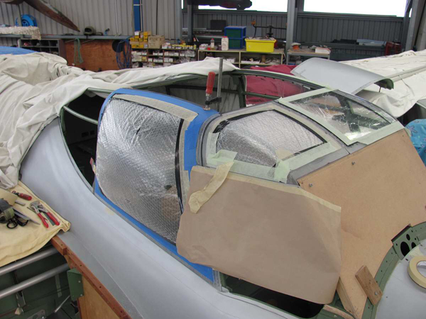 We have continued with the canopy glazing and have completed the left side and the fwd upper right side. Some original closing strips have been good enough to use and some require replacing. The parts have come back from plating for the windscreen de-ice hand pump, so this has been assembled. A new plunger shaft and return spring has been incorporated and the unit has been function tested. It is now installed and a new connection pipe has been made.