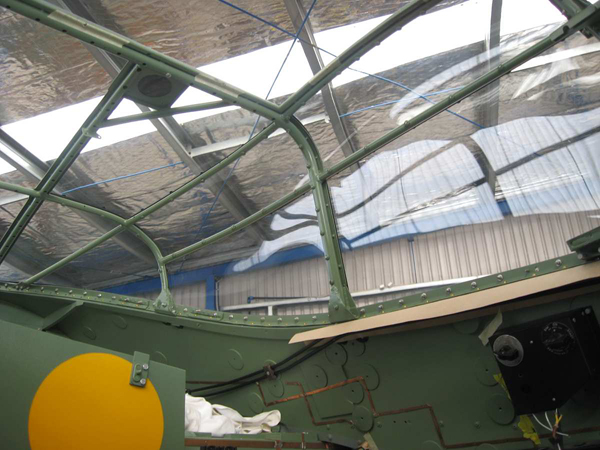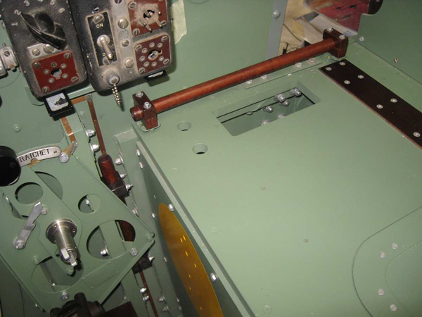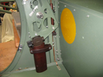 The trailing aerial antenna guides have been refurbished and coated in varnish and installed at the winch, along the top of the navigation bench and also at the top L/H rear of the cockpit.