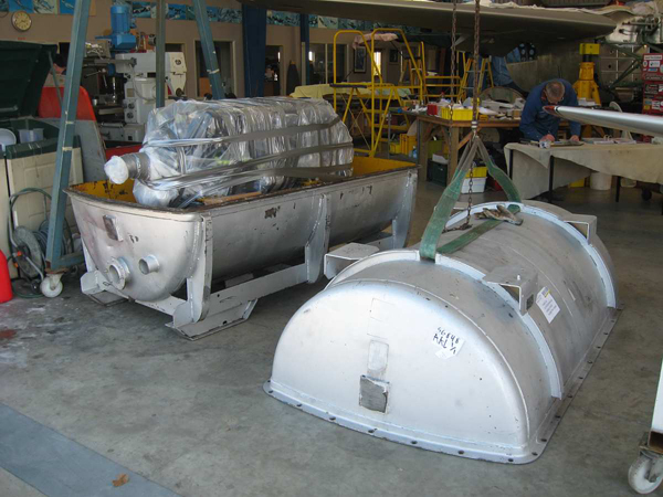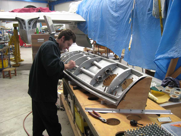 We have begun work on the rebuild of the main gear doors. The left hand outboard door is the first one we are doing and we are well into the re-assembly. The inner skin and ribs are original with just a new outer skin required.