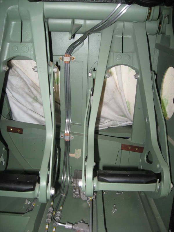 We have prepared the R/H cockpit side wall oxygen pipework and installed these as well as fabricated the pipes that run under the cockpit coaming. The main shut off valve and blinker are installed. The brake triple gauge pipework has also been fabricated from the base of the control column up to the pressure gauge in the panel.