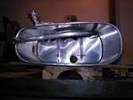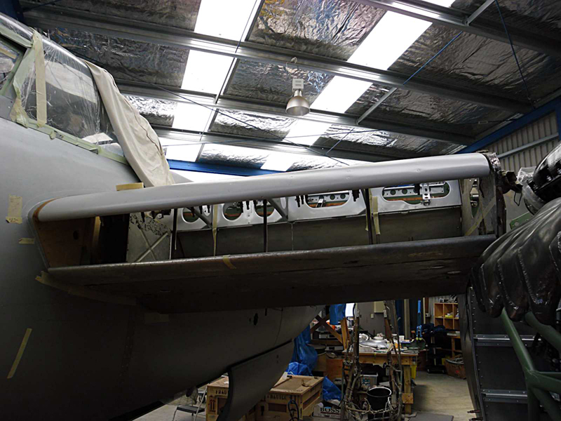 We have refurbished the left hand forward cowl dishpan and this is now in primer ready to be top coated. We have sourced a second panel from the local museum a