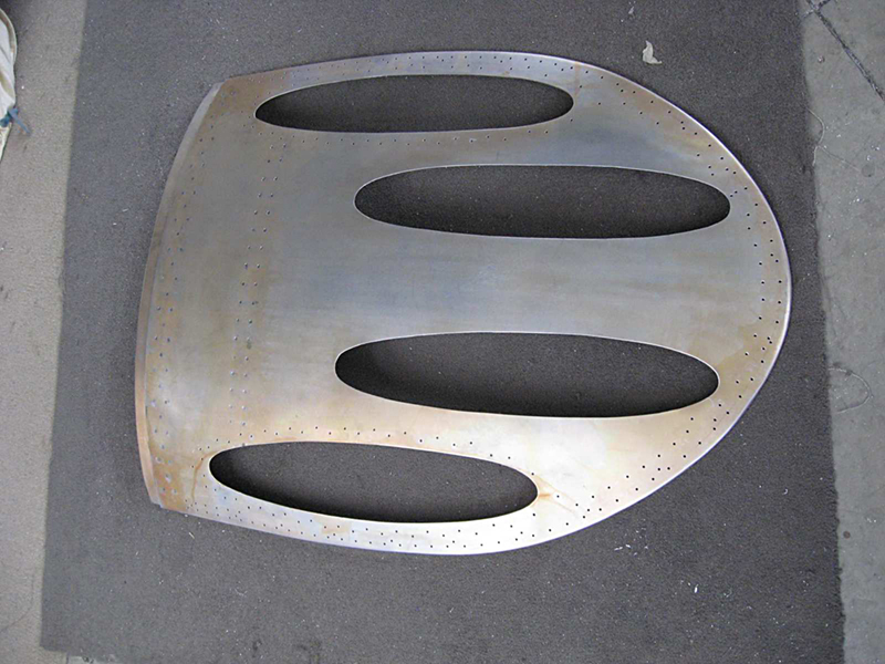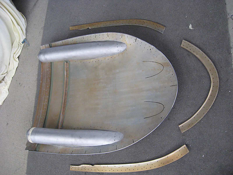 We have begun the remanufacture of the forward canon panel. It requires a new skin but we will be able to reuse the stainless shrouds again after some panel beating.