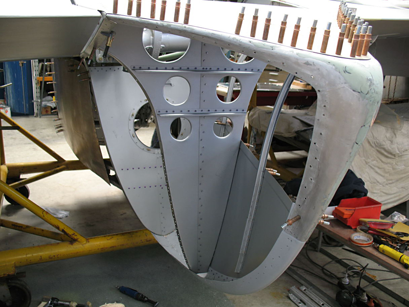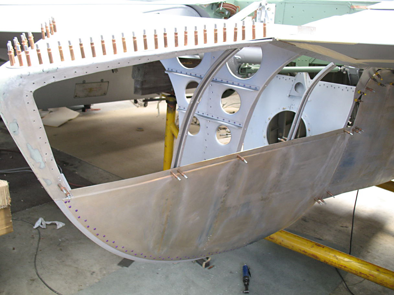 Work is continuing nicely on the nacelles and we are well into the rear section of the right hand unit now. The structure is all in place and the right lower skin and top rear panel have both been completed and the lower section is riveted in place.