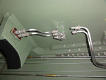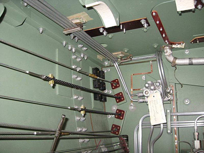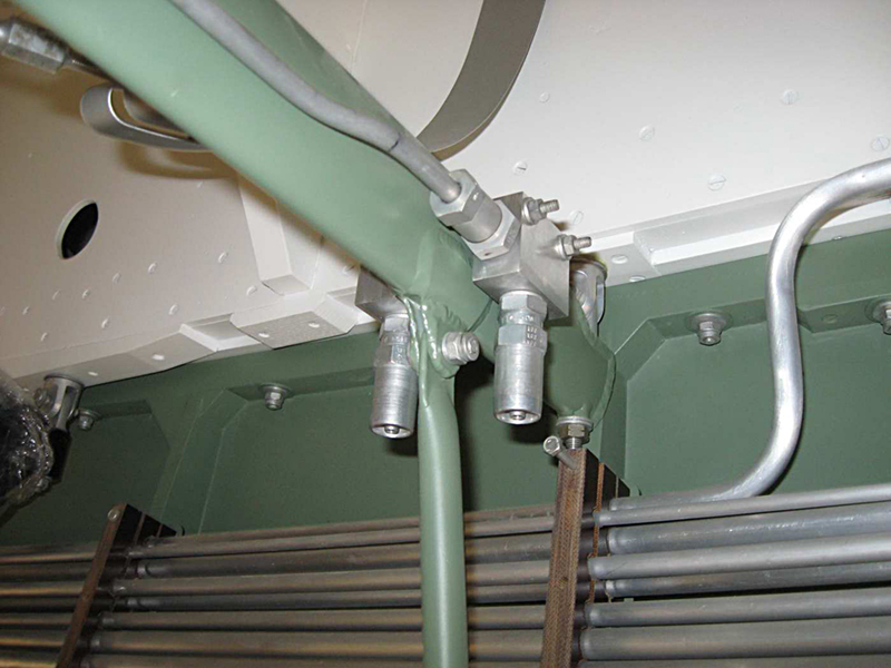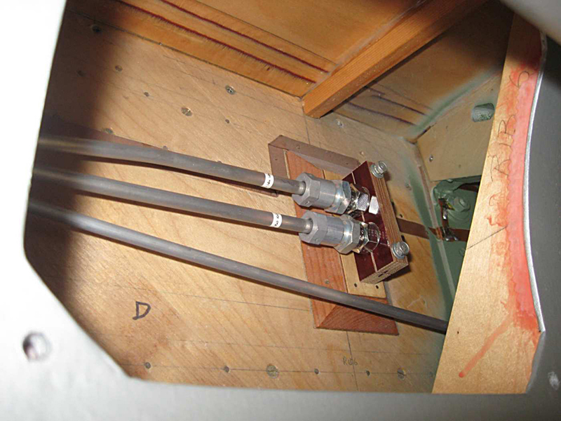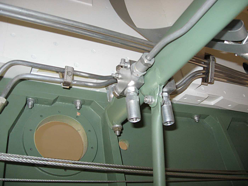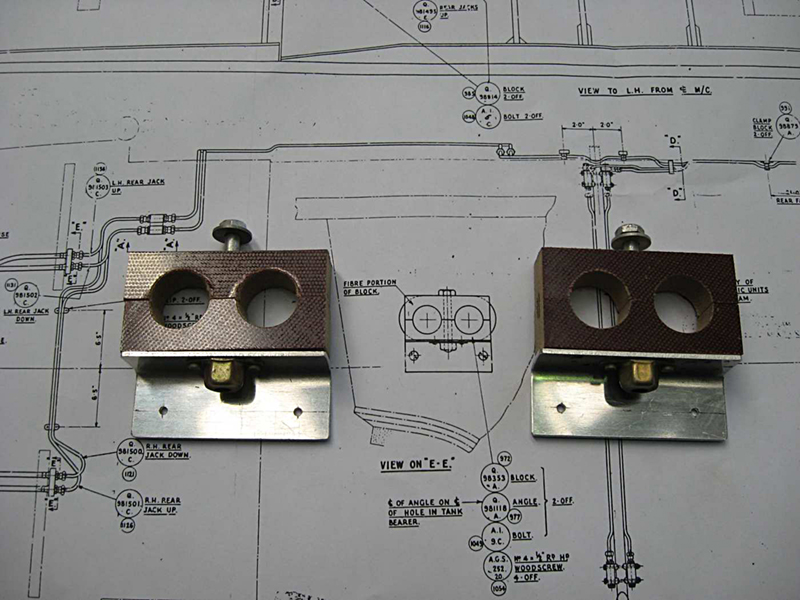 We have continued with the plumbing of the flap actuating lines and the emergency gear extension line and have completed these with the installation of the flexible hose end blocks on the spar. We have moved our attention to the bomb door opening ram plumbing. There are four hydraulic rams used to open the bomb doors and we have fabricated the junction blocks, run the pipework and installed the hose mounting blocks into the bomb bay.